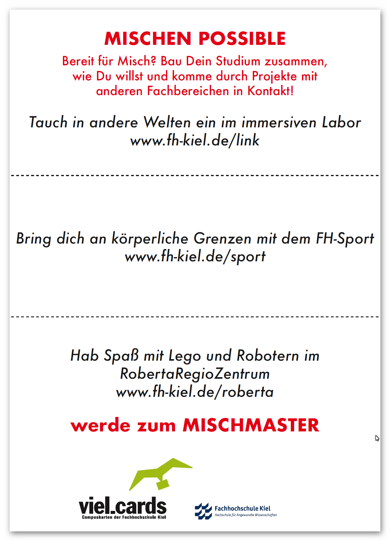 FH Kiel. Auftraggeber war „VIEL.“, das Campusmagazin der FH Kiel.